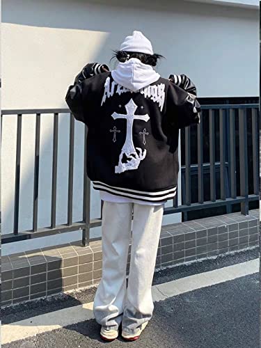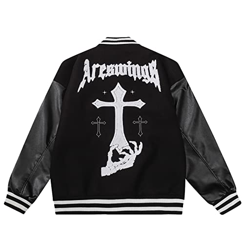 ——-Aelfric Eden Men’s Varsity Jackets Y2k Graphic Baseball Bomber Jacket Women Leather Cuff Letterman Jacket——-