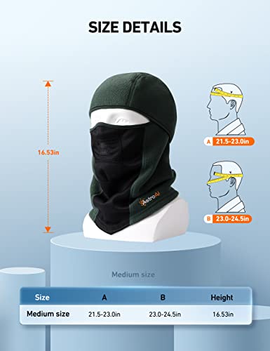 AstroAI Balaclava Ski Mask Winter Fleece Thermal Face Mask Cover for Men Women Warmer Windproof Breathable, Cold Weather Gear for Skiing, Outdoor Work, Riding Motorcycle & Snowboarding, Green-M