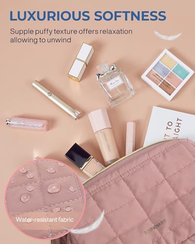 【Sophistication with Comfort】- Made from soft and luxurious taslan fabric, this cute and puffy makeup bag showcases a laid-back vibe that effortlessly complements your beauty routine. The supple texture of cosmetic case adds an element of relaxation to your daily rituals, allowing you to unwind and enjoy the process of getting ready.