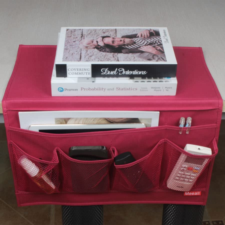 Specification: Meeall Bedside Caddy 6 Pockets Bedside Organizer Caddy Fit Tablet Magazine Phone Glasses, Under Mattress Remote Control Holder Storage Organizer, Red