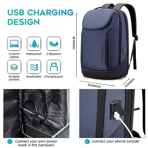 BANGE Business Smart Backpack Waterproof fit 15.6 Inch Laptop Backpack with USB Charging Port,Travel Durable Backpack