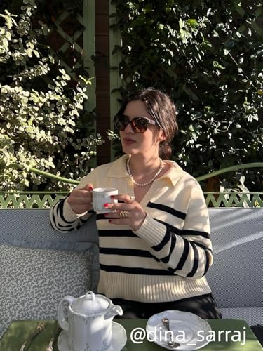 Specification: CIDER Women’s Polo Sweater Striped Collared Lightweight Long Sleeve V Neck Pullover Fall Sweater Tops 2024