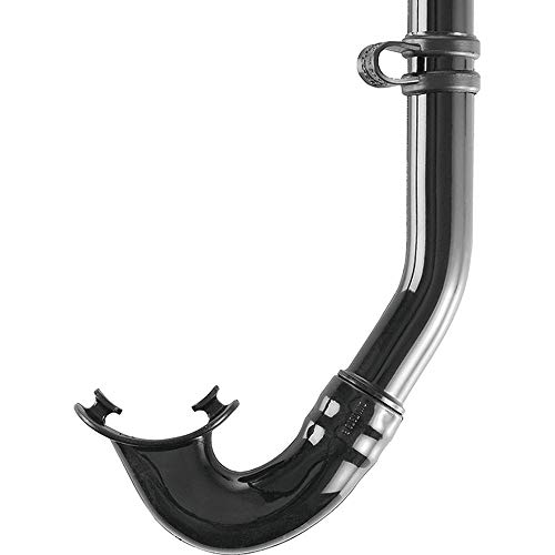 Traditional adult snorkel designed for scuba diving and freediving.