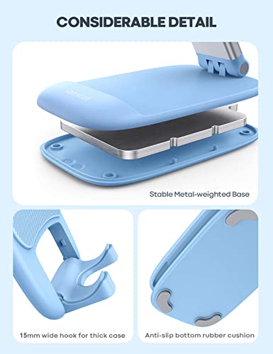 🎁Height & Angle Adjustable – The adjustable blue phone stand can be titled to vertical, and height can be extended up to 3.2 inches. It allows you to get a more comfortable viewing angle and height. Reduce the frequency of looking down at the phone screen to avoid hurting your back and neck. A perfect desktop accessory that frees your hands to watch online class, do live stream.