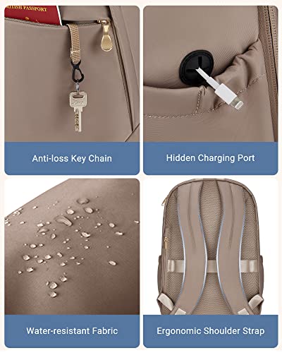 Specification: LIGHT FLIGHT Travel Laptop Backpack Women, 15.6 Inch Laptop Backpack with USB Charging Hole, Water Resistant College Bookbag, Black Computer Backpacks for Work, Champagne