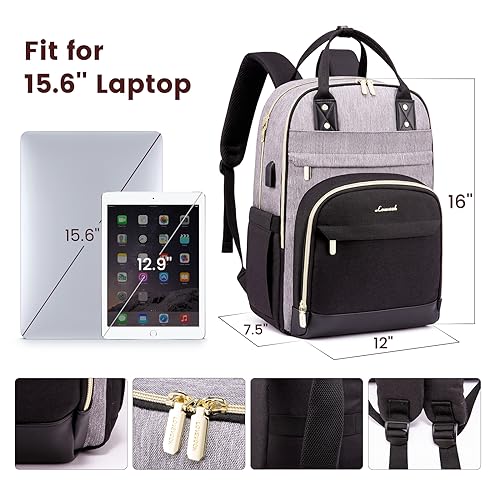 Specification: LOVEVOOK Backpack for Women,Laptop Backpack Women,Fits 15.6 Inch Laptop Bag,School Backpacks,Fashion Travel Work Anti-theft Bag,Waterproof Business Computer College Backpack Purse,Grey-Black-Balck