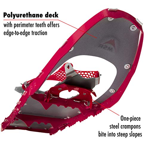 Ultralight (4.04 lbs), high-traction snowshoes with a tapered frame that’s perfect for snowshoers with a narrow stride; ideal for winter hiking in mountainous terrain