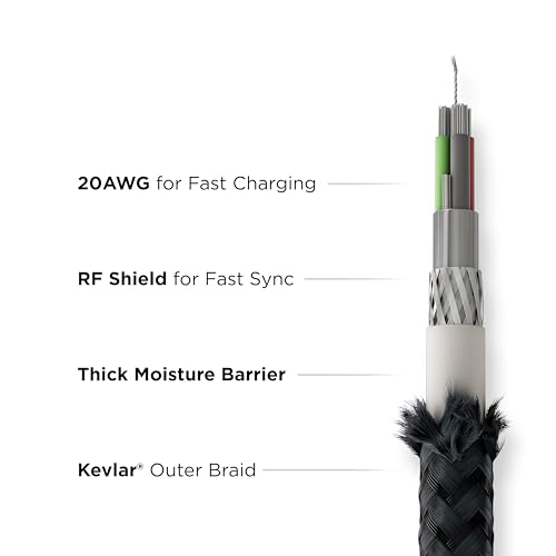 Designed for versatility, USB-C Universal Cable with Kevlar is the fastest USB-C charging cable for your MacBook Pro, other USB-C, and Micro USB devices. Quickly transition between USB-A, USB-C, and Micro USB connectors to charge your devices. Reinforced with a double-braided Kevlar outer sheath and strong metal alloy connector housings, this cable has been engineered for extreme durability and heavy everyday use.
