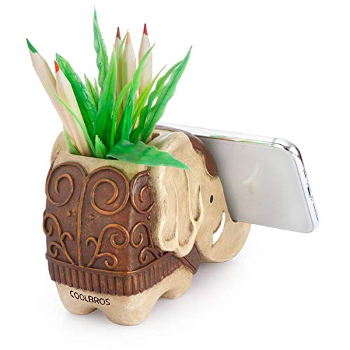 Specification: Pen Pencil Holder with Phone Stand, COOLBROS Resin elephant Shaped Pen Container Cell Phone Stand Carving Brush Scissor Holder Desk Organizer Decoration for Office Desk Home Decorative (Retro Brown)