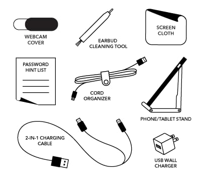 Clear screen, full charge, can’t lose. With the new Tech Kit from Pinch Provisions, you can CTRL + ALT + DLT your problems away. The pouch contains 8 tech essentials, plus room for for extra cords. Universal 3-in-1 charging cable is compatible with most smartphones and tablets. USB wall charger suitable for use in North America.