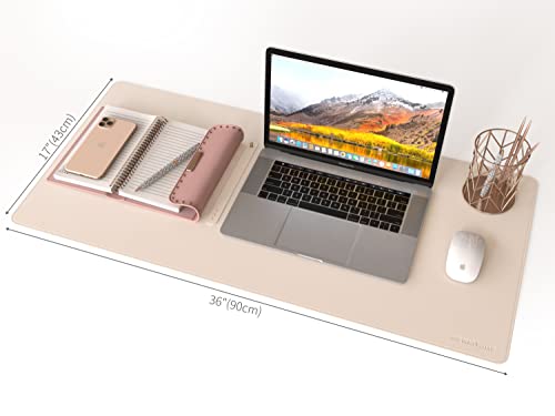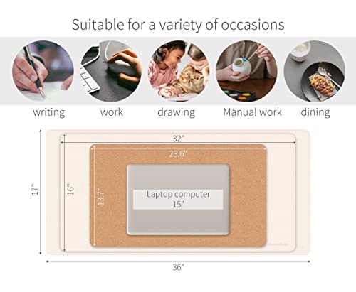 Specification: RENMTURE Dual-Sided Mouse Pad, Natural Cork & PU Leather Large Desk Pad for Office and Home Work, Desk Protector Non-Slip, Waterproof, Easy Clean (Apricot, 36″x17″)