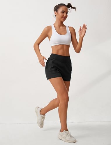 SILKWORLD Womens Shorts High Waisted Running Shorts Quick Dry Athletic Workout Shorts with Liner Zipper Pockets