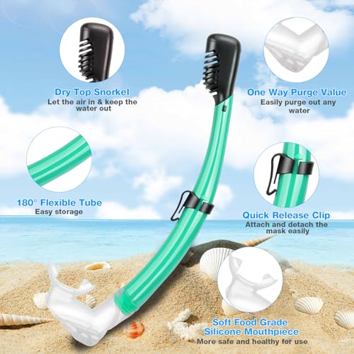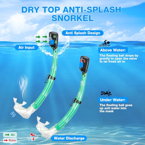 【 Dry Snorkel with Purge Value 】 Our full dry snorkel adopting floate valve at the top of breathing tube can completely seal to keep water out when under water and would open to let you breath easily when above water. One-way purge valve help to clear out water leak into snorkel quickly. PIYAZI juniors snorkel is a nice touch if you are in rougher water or are constantly diving during snorkeling.
