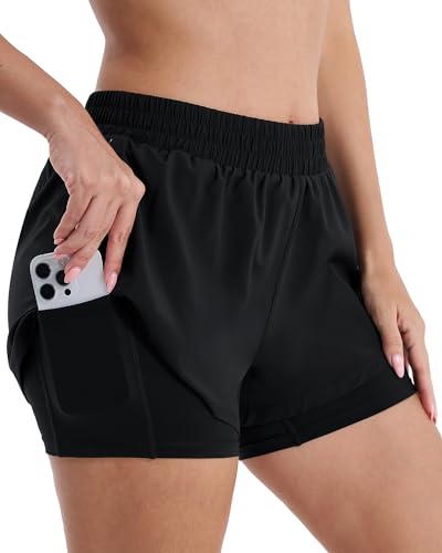 Stelle Women’s 2 in 1 Running Shorts Athletic Workout Gym Shorts High Waisted Shorts with Liner Zipper Pockets