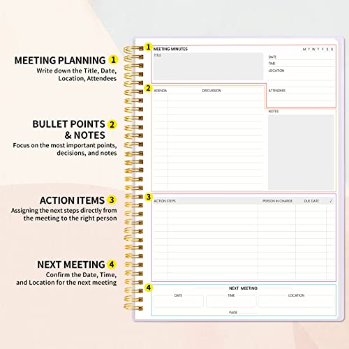 Specification: SUNEE Meeting Notebook for Work with Action Items – 160 Pages, A4 Size Project Planner, Spiral Meeting Agenda/Minutes Notebook Organizer for Women Men, Note Taking, Office & Business, 8.5″x11″, Purple