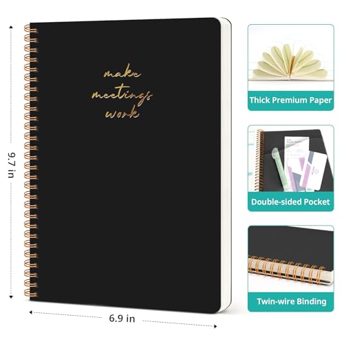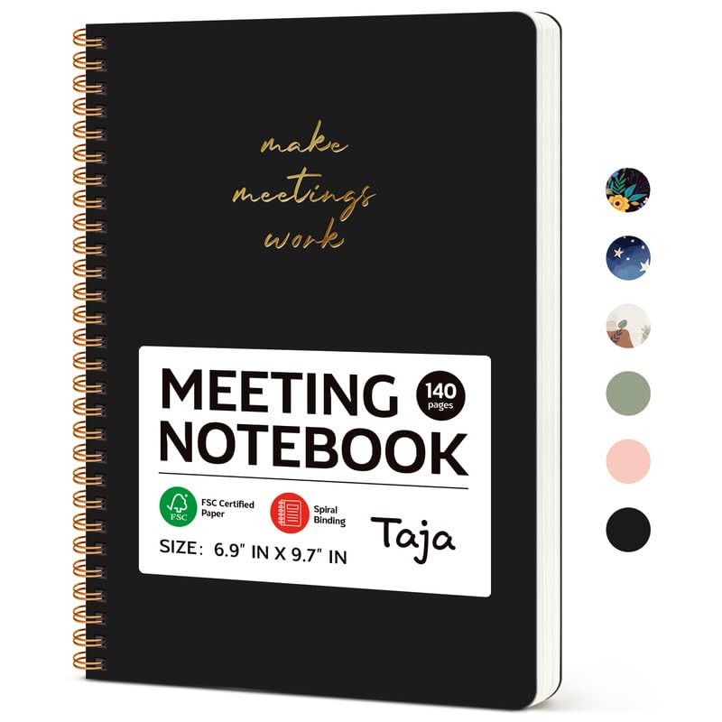 Specification: Taja Meeting Notebook for Work Organization – Work notebook with action items, Meeting Minutes Planner Notebook, Perfect Office Supplies for Men & Women – Black