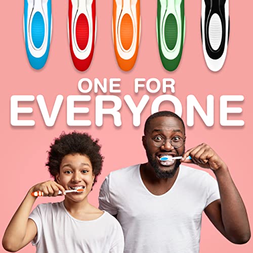 Non-Slip Grip Handle in Vibrant Colors: A comfortable Non-Slip Grip handle is important for precise control during brushing. Toothbrush kit Offered in Green, Blue, Orange, Red, and Black!