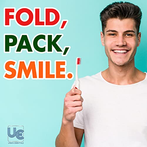 Urban Essentials Foldable Travel Toothbrush – Individually Wrapped Medium Soft Bristle Toothbrush Case – Compact On-The-Go – Adults and Kids Travel & Camping