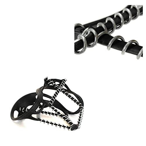 Material: rubber + manganese steel spring.The material is made of special wear-resistant and stretch-resistant rubber, has good elasticity.Provides 360 degrees of traction on cold surfaces for all-direction stability; Spikeless, ultra lightweight design