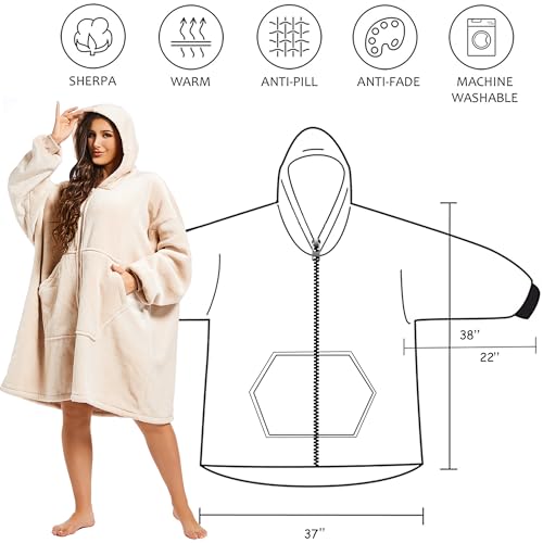 Specification: NIMOJIRO Wearable Blanket Winter Oversized Sweatshirt Hoodie With Huge Pockets, Comfortable Suitable for Adult Women Men