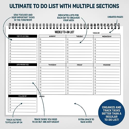 Specification: Weekly Planner To Do List Pad – 8.5×11″ 52 Sheets Spiral – Desk Notepad with Multiple Sections – Undated Planning Notebook Checklist, Todo Agenda Plan