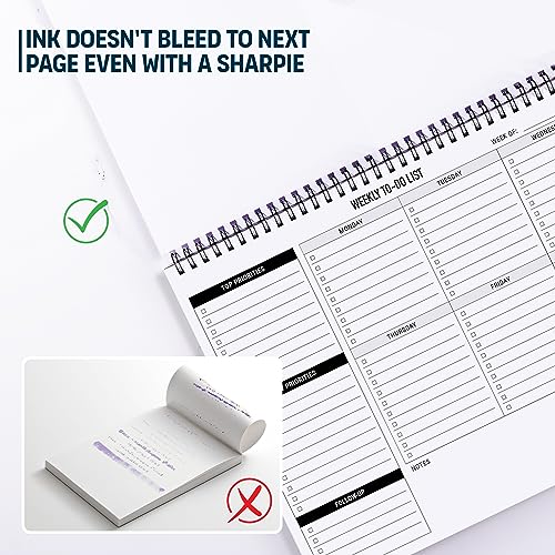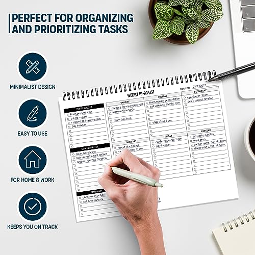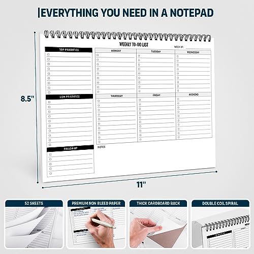 Weekly Planner To Do List Pad – 8.5×11″ 52 Sheets Spiral – Desk Notepad with Multiple Sections – Undated Planning Notebook Checklist, Todo Agenda Plan